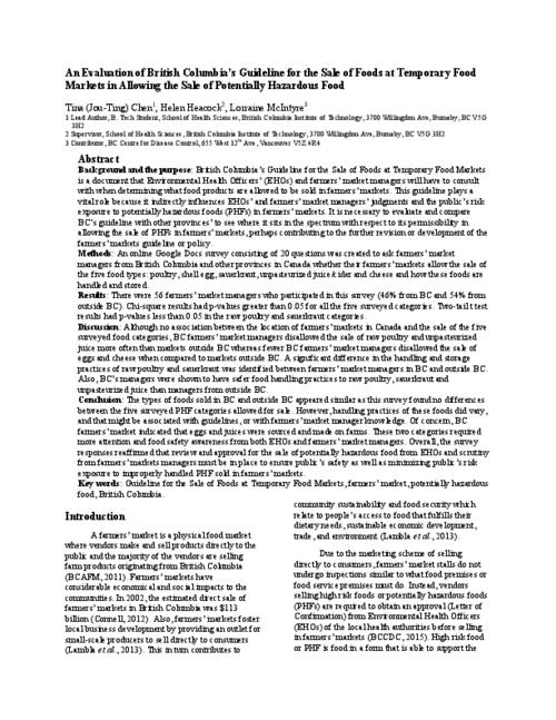 An Evaluation Of British Columbia S Guideline For The Sale Of Foods At Temporary Food Markets In Allowing The Sale Of Potentially Hazardous Food The Bcit Circuit